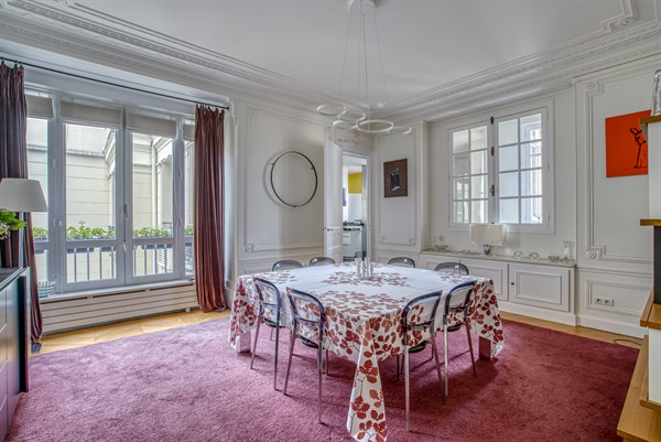 D'une surface de 165 m2, Récamier possède tous les atouts des nobles appartements parisiens avec moulures au plafond et parquet ancien. Le double salon offre un espace de détente appréciable après une journée de visites ou de rencontres professionnelles. La salle à manger dispose d'une table conviviale pour vous restaurer sur place en famille ou entre amis avec une cuisine indépendante entièrement équipée. Ce bien se compose de deux chambres : la masterbedroom avec une salle de bains attenante et des rangements pour vos effets personnels et une seconde chambre modulable avec deux lits simples et une salle de douche moderne.